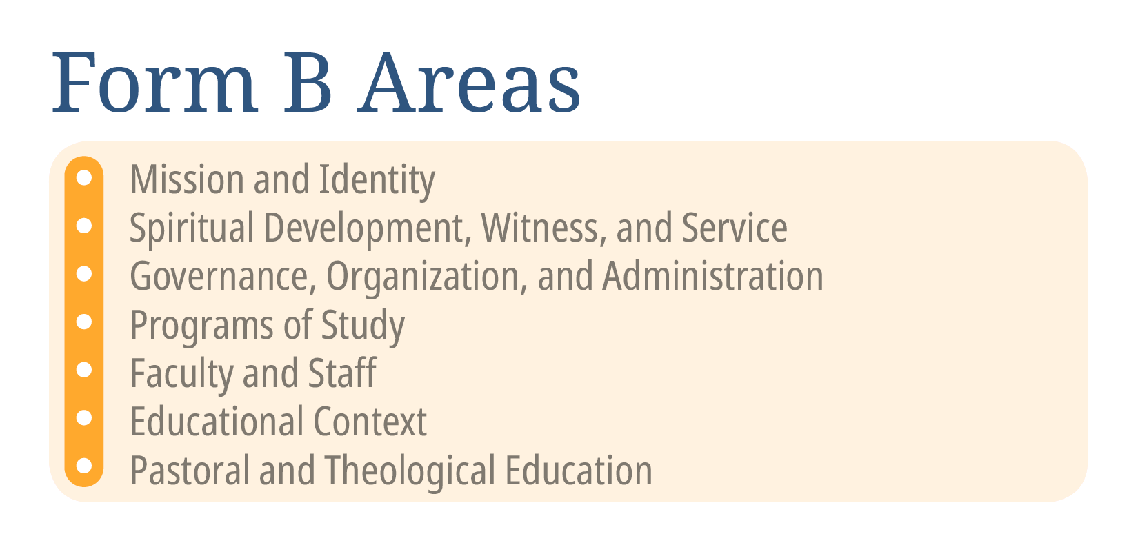 This training guide focuses on the accreditation of Form B institutions, which contains a more focused accreditation set of criteria in contrast with the original, and widely used worldwide, Form A. Assuming that a successful regional accreditation status looks closely at more technical and operational functions of the institution, Form B standards and criteria are focused on the more unique and missional aspects of Adventist education.