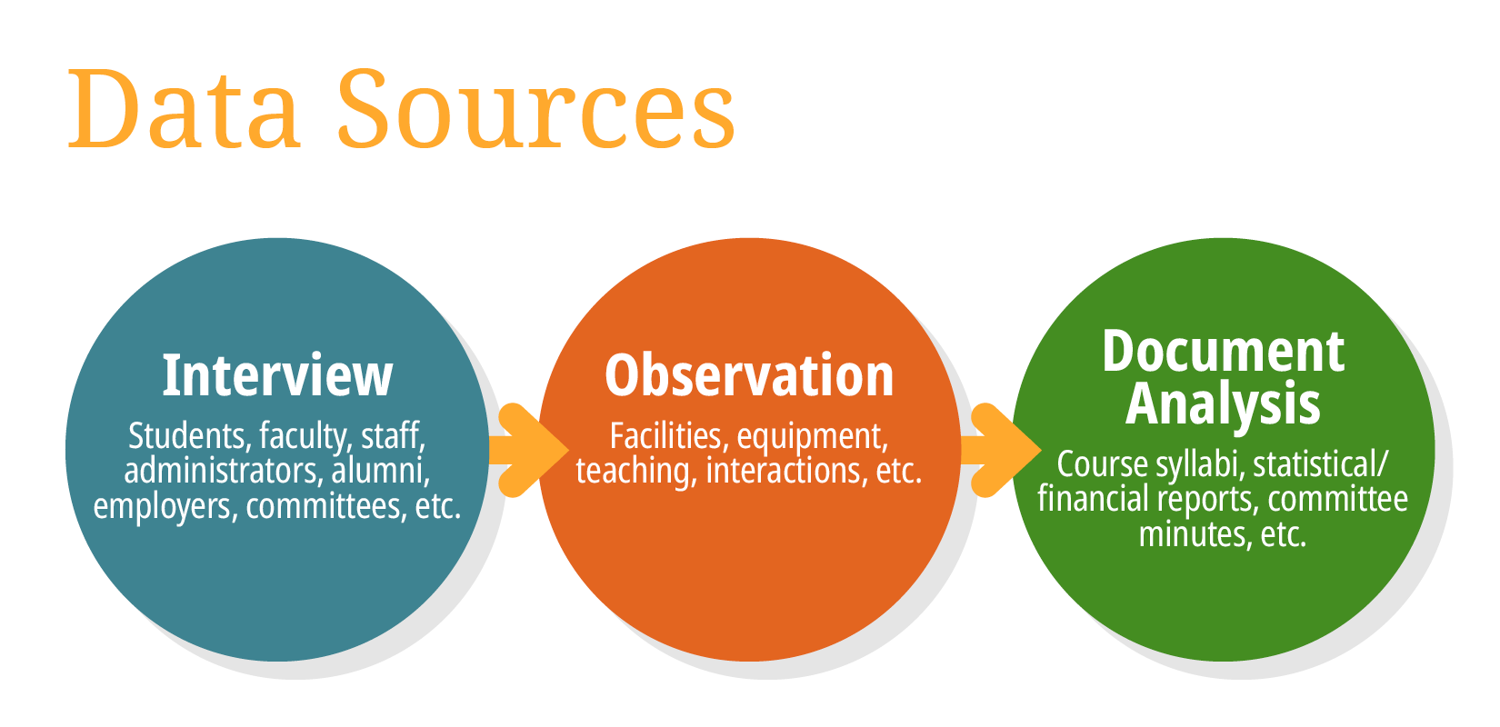 - Each commendation or recommendation must be based on a minimum of two sources: either the Self-Study document or other institutional documents, personal observation, or an interview with a board member, administrator, faculty, staff, students, or alumni. This crosscheck and verification of sources must be identified for each commendation and recommendation.